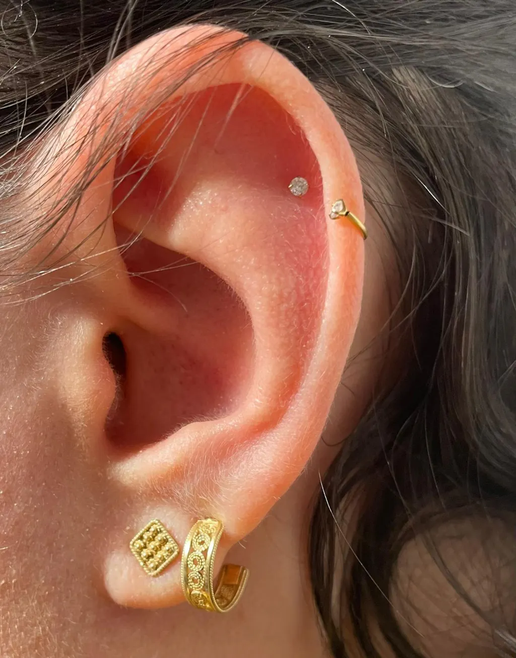 Acheté pour un helix qui a cicatrisé penché et sur lequel aucun bijou ne rendait bien : le résultat est splendide, très fin et confortable. En effet la taille du bijou rend l'installation des têtes threadless un peu sportive, mais pour l'instant il n'a pas bougé.