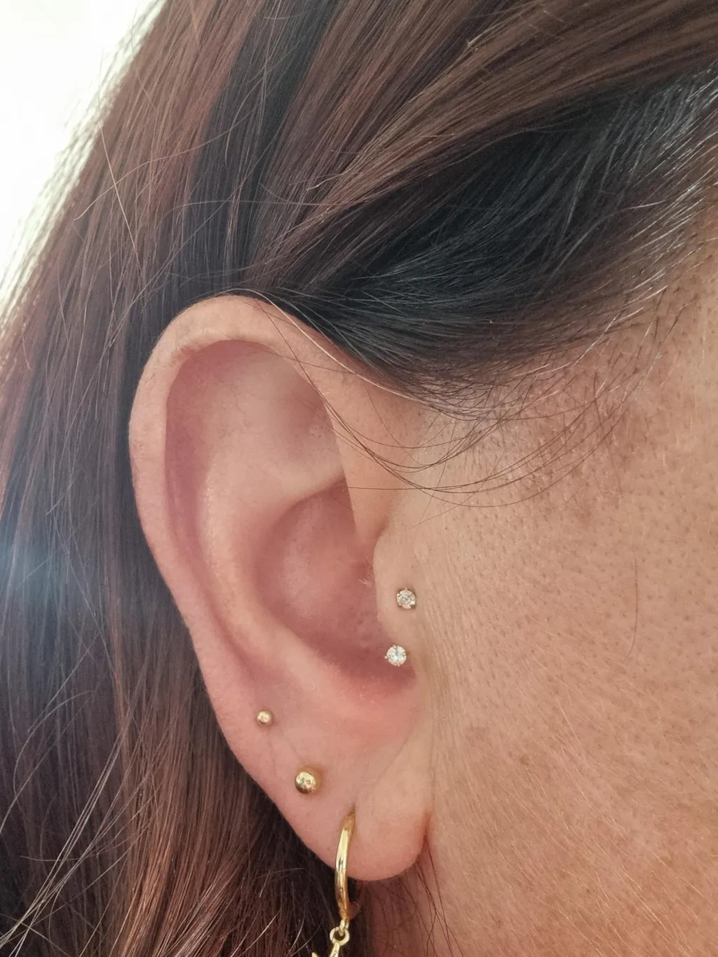 Chouette piercing mais déçu du rendu. Je l'ai pris en diamètre 10 mm comme évoqué sur le modèle pour le 2ème trou du lobe mais le rendu est trop grand. Très complexe à visser, la pierre est très petite et sa taille fait aussi que le piercing rentre dans le trou de mon oreille.